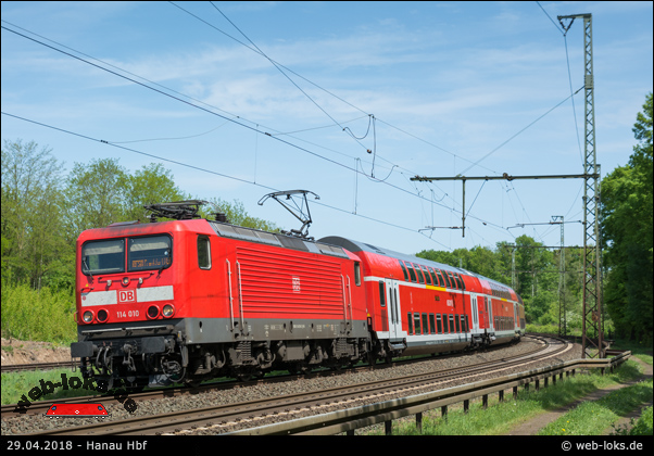 ![]() 114 018-5 am 19.04.2014 in Hanau Hbf Anderes Bild |