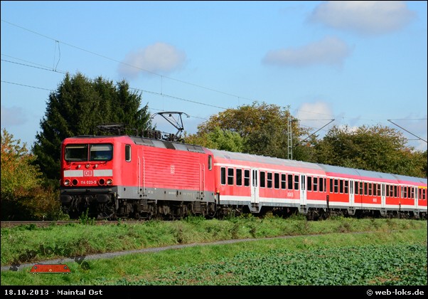 ![]() 114 023-5 am 18.10.2013 in Maintal Ost Bild: Neue Nummer |