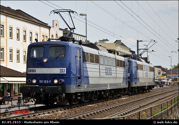 ![]() 151 123-7 am 02.05.2015 in Rüdesheim Bild: Verkehrsrot |