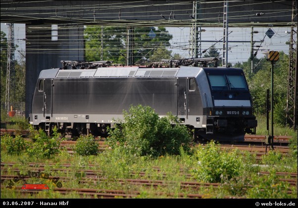 ![]() 185 572-5 am 03.06.2007 in Hanau Hbf Bild: Rail4Chem |